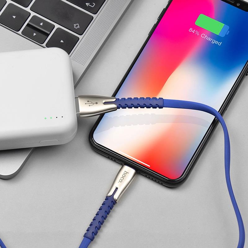 U58 Core USB to Lightning charging data cable 1.2m current 2.4A nickel-zinc alloy connectors and TPE braid1. Cable length: 1.2 meters. Weight: 33g.2. Cable support charging and data transmission, the maximum current is about 2.4A.3. Cable materials: nickel-zinc alloy connectors + TPE braid.4. Wire core specification: 118 four core oxygen-free tinned copper OD=6.0*2.5mm.