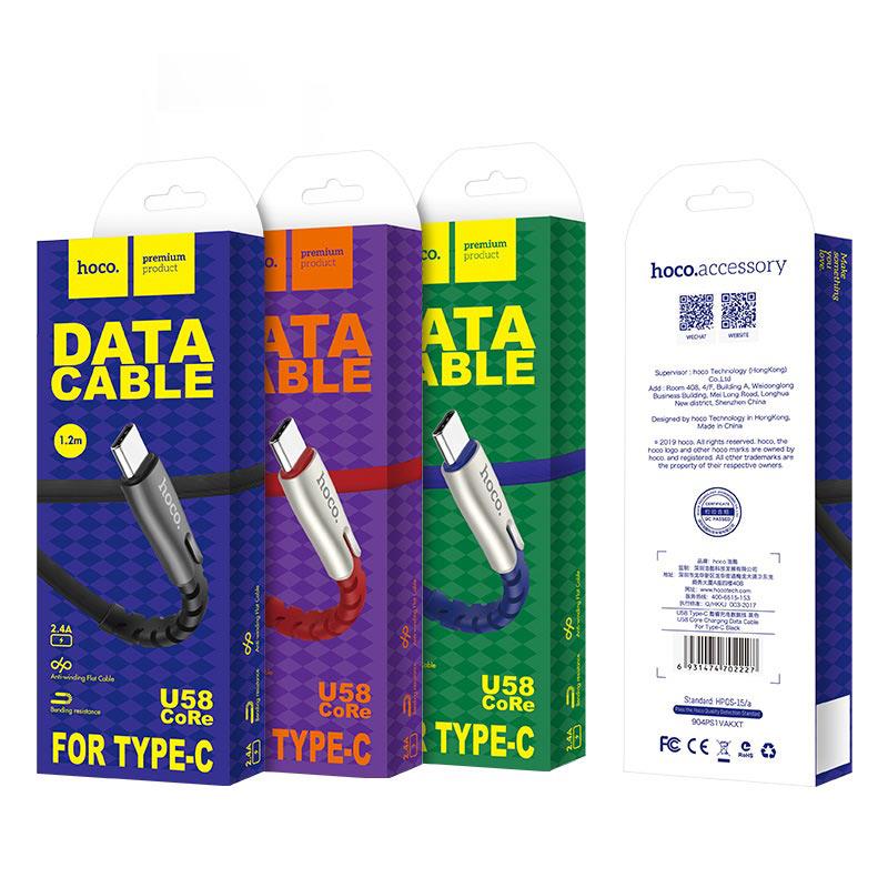 U58 Core USB to TYPE C charging data cable 1.2m current 2.4A nickel-zinc alloy connectors and TPE braid