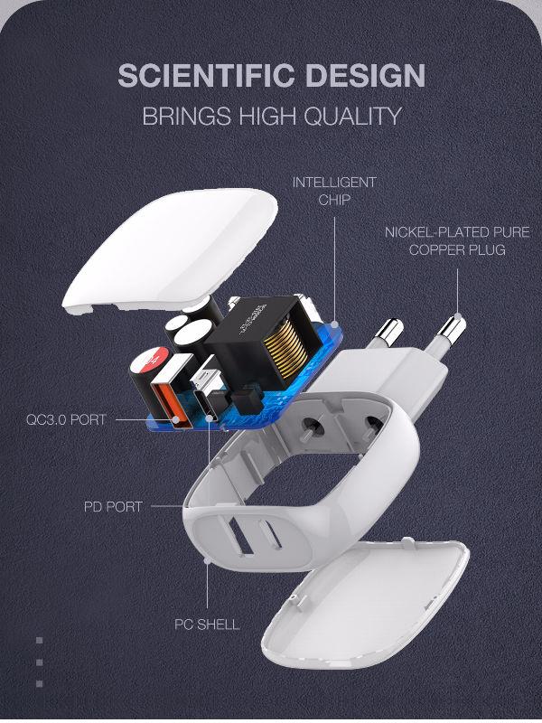 3.  QC3.0 fast charger outout:5V/3A or 9V/2A or 12v/1.5A PD(USB-C)  fast charger +  QC3.0 Fast charger