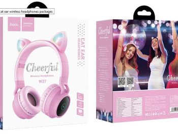 HOCO W27 ΑΚΟΥΣΤΙΚΑ ΜΕ ΑΥΤΙΑ ΓΑΤΑΣ ΜΕ LED, ΡΟΖ