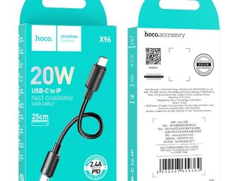 HOCO X96 ΚΑΛΩΔΙΟ ΜΕΤΑΦΟΡΑΣ ΔΕΔΟΜΕΝΩΝ HYPER PD ΣΕ LIGHTNING,0.25m, ΜΑΥΡΟ